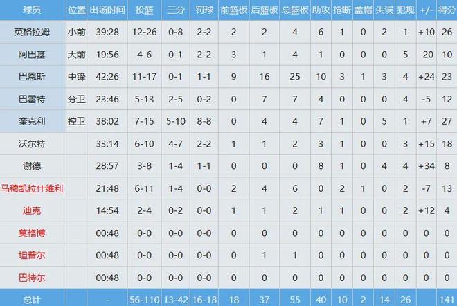 不過時間打得太長又頻繁在內線肉搏,把巴恩斯累得夠嗆,下場休息後直接躺在座椅,真正意義上的傾盡所有。