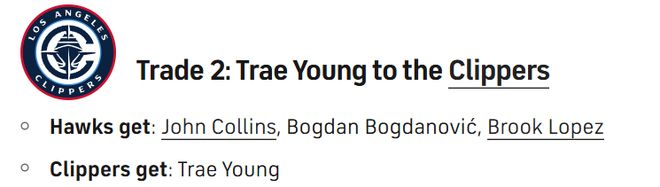 北京時間1月7日,據美媒HoopsHype報道,快船是密切關注特雷-楊的球隊之一。那麽,快船該如何得到特雷-楊,用哈登換他屬實有些瘋狂,CBS體育列出了一個更現實的3換1方案。具體如下——