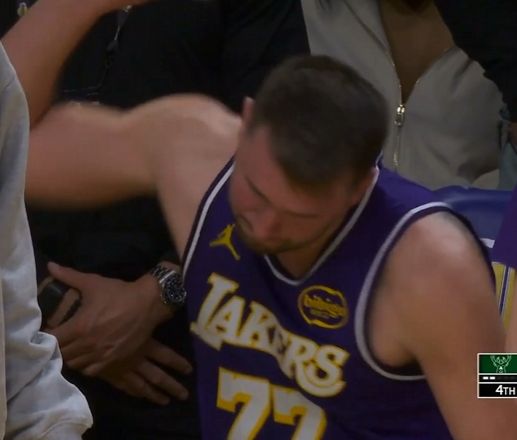 雄鹿關鍵一攻,東契奇對波特三分犯規,後者三罰兩中,東契奇6犯離場,這是他職業生涯第三次六犯離場,湖人落後兩分,在下場之後,東契奇憤怒摔護膝表達了不滿。最後,詹姆斯執行最後一攻,但是球被切掉,最終湖人遺憾輸球。