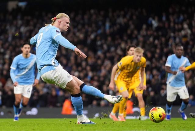 賽程密集,指望一套班底橫掃天下不現實,這是大勢,而具體到本場對布萊頓,最大的問題實際是有餅吃不下,送到嘴邊還能給吐了。就說進攻功臣哈蘭德,他的功可是抵不了過(雖然其曼城第150球原本很有紀念意義)。全場挪威人爆射8腳,射正次數則有4次,這數據理應不錯吧?但看現場真的有點辣眼睛,尤其是非點球射門中預期進球值最高的那次(0.26):第81分鍾,謝爾基對方禁區內斷球成功,稍做調整晃開防守就給了哈蘭德一記穩到不能再穩的橫傳,但曼城9號不假思索抬腿就射,角度有一點,力量太不夠,被對方門將費布呂亨一個側臥就抱入懷中。